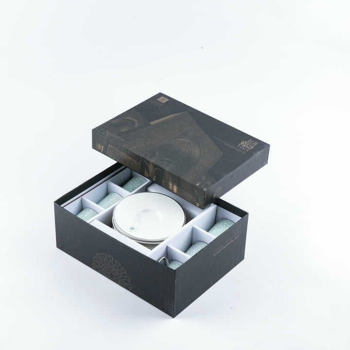 طقم قهوة تركية من أصالة 12 قطعة - تركواز و فضي