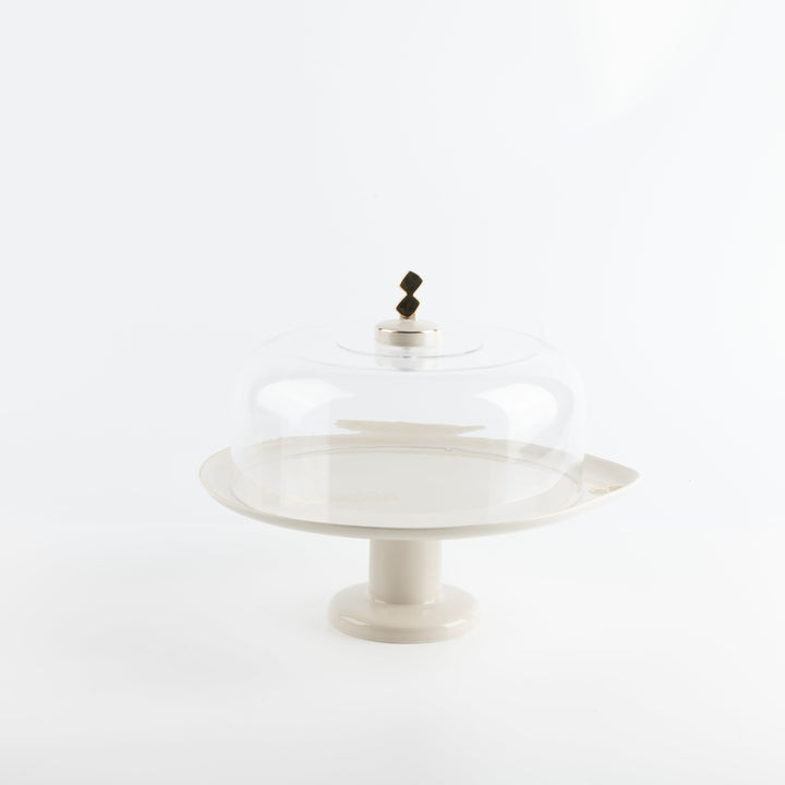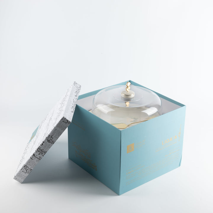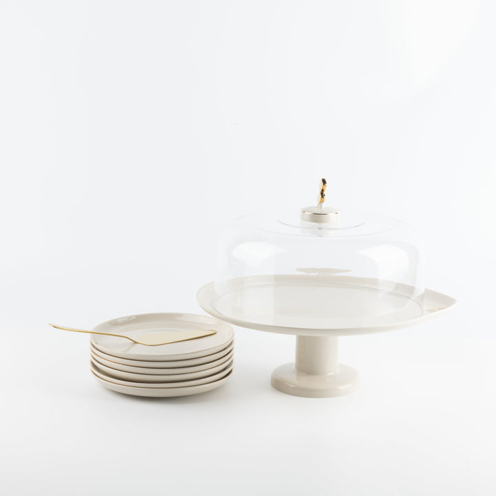 6 Plates And Stand With Acrylic Cover With Knife From Liqaa - Beige + Gold