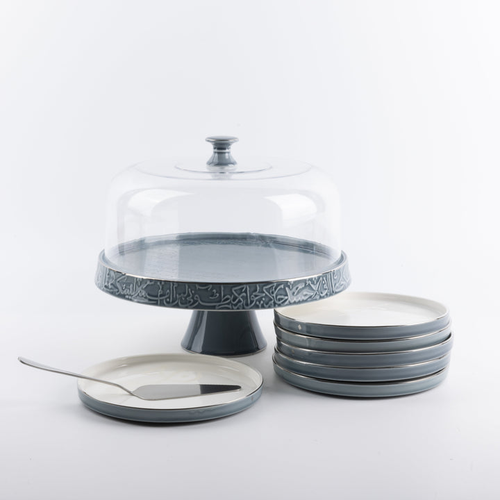 Cake Serving Set 9 Pcs From Jiwar - Blue + Silver