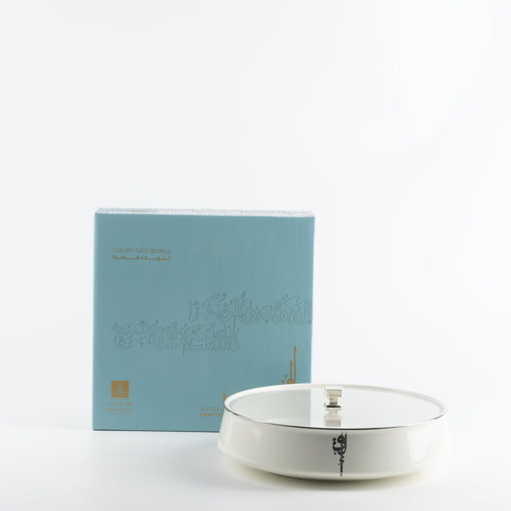 Large Date Bowl From Liqaa - Pearl White + Silver