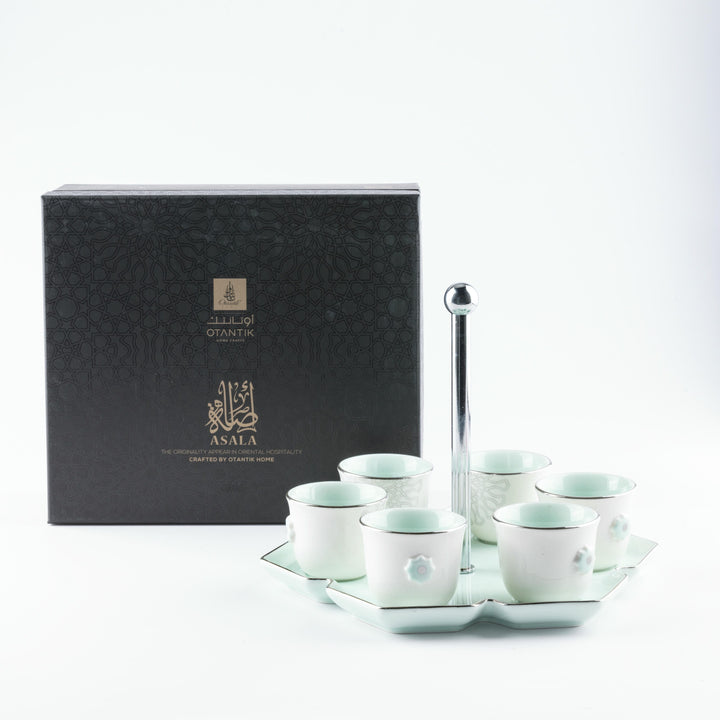 Indulge your guests with this exquisite Arabic coffee set with a luxurious stand from Asalah, offered by the Otantik store at an attractive price and excellent packaging. Don’t miss out – add this beautiful companion to your special moments today!
