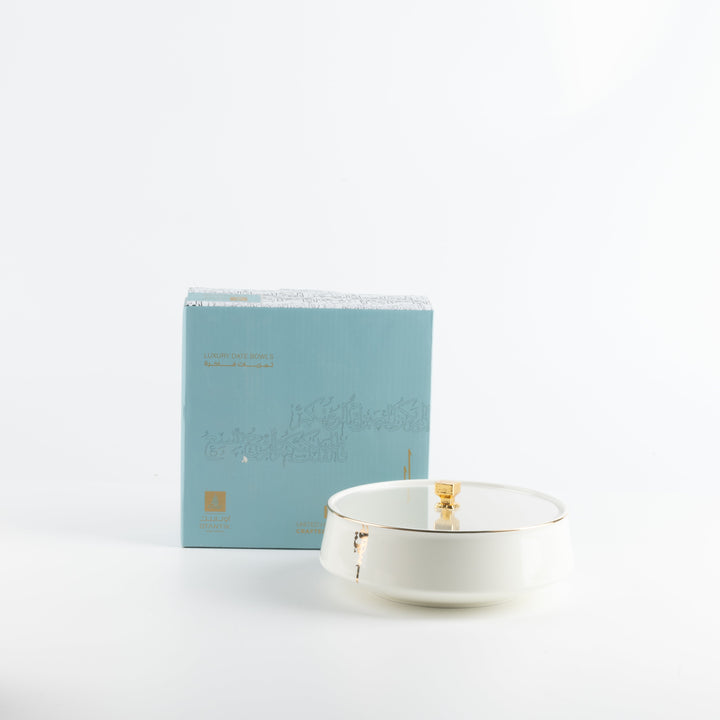 Medium Date Bowl From Liqaa - Pearl White + Gold
