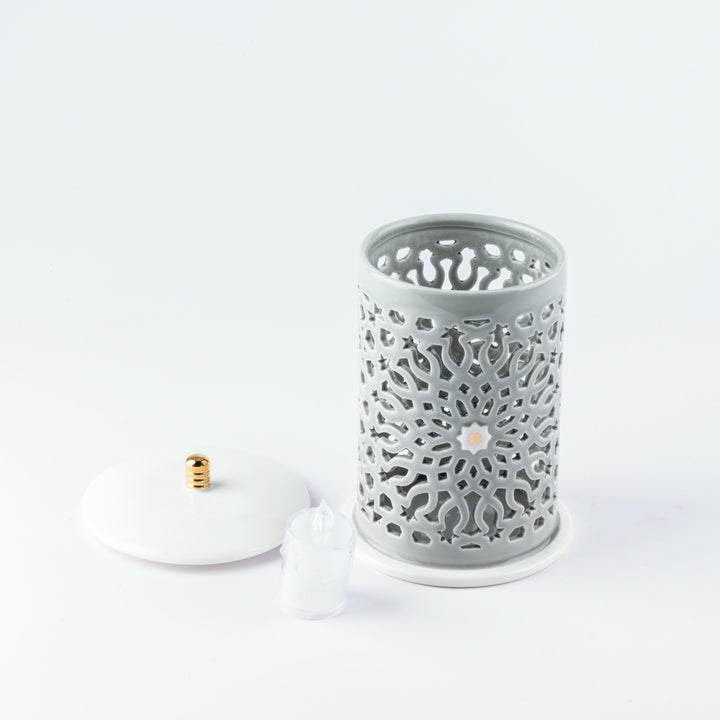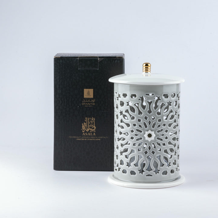 This electronic candle holder from Asalah is designed with a contemporary and distinctive style that exudes luxury and precision. Made from premium porcelain, it delivers soft lighting and warm atmospheres in every corner. It consists of two main parts: