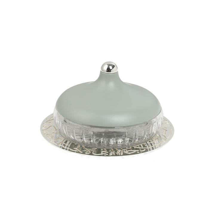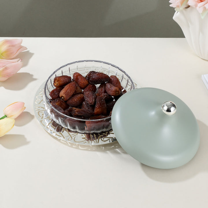The date holder consists of 3 pieces: the first is a plate made from the finest stainless steel, adorned with exquisite Arabic calligraphy engravings. The second piece is a container made from high-quality glass.