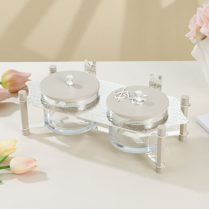 Nut Serving Set with Tray 2 Bowl from Jiwar - Beige and Silver
