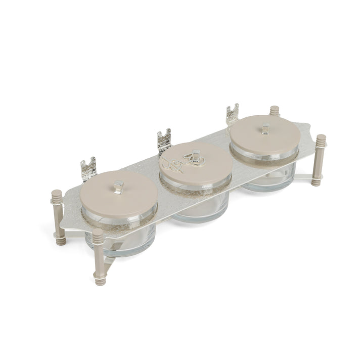 Nuts Serving Set 3 Bowl With Tray From Jiwar - Beige + Silver