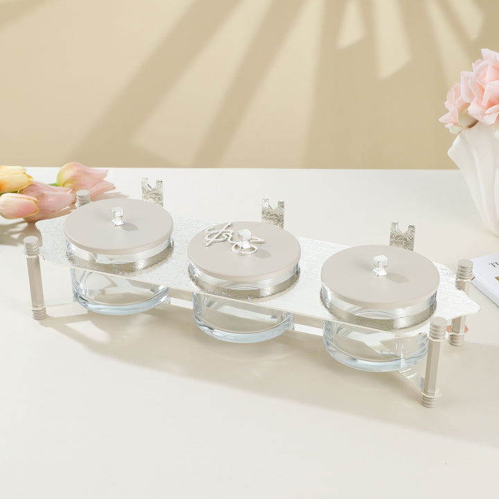 Nuts Serving Set 3 Bowl With Tray From Jiwar - Beige and Silver