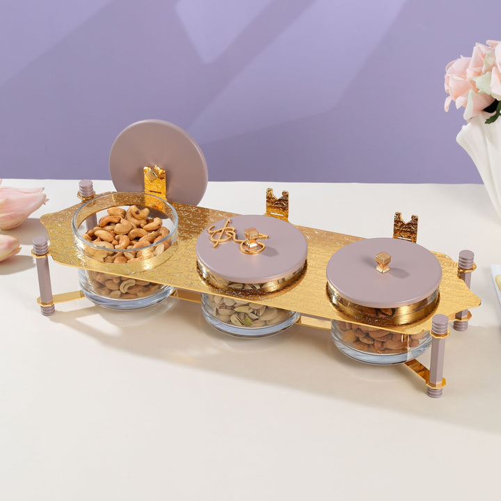 Nuts Serving Set 3 Bowl With Tray From Jiwar - Purple + Gold