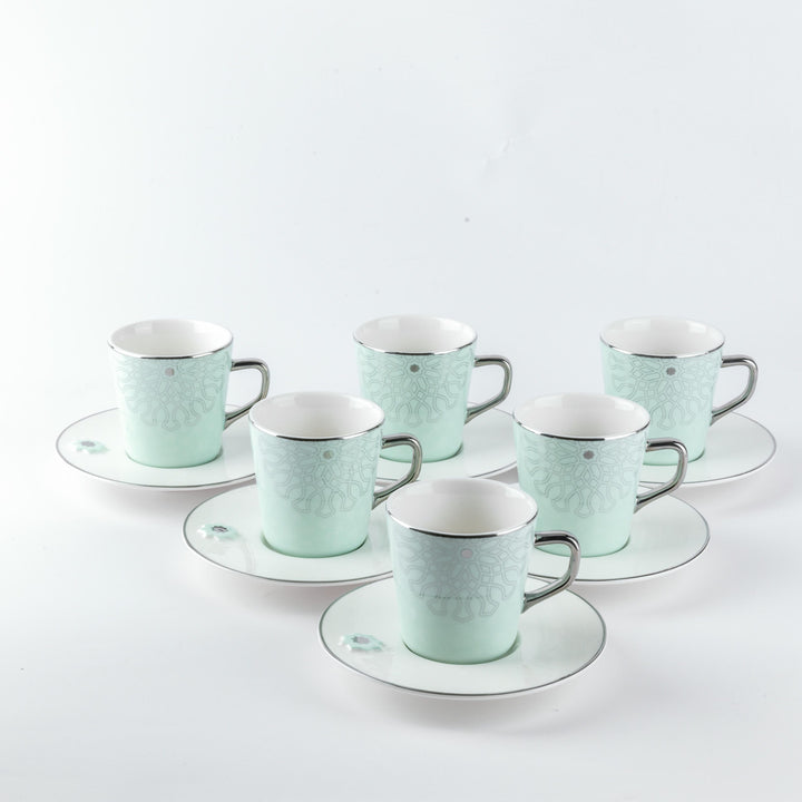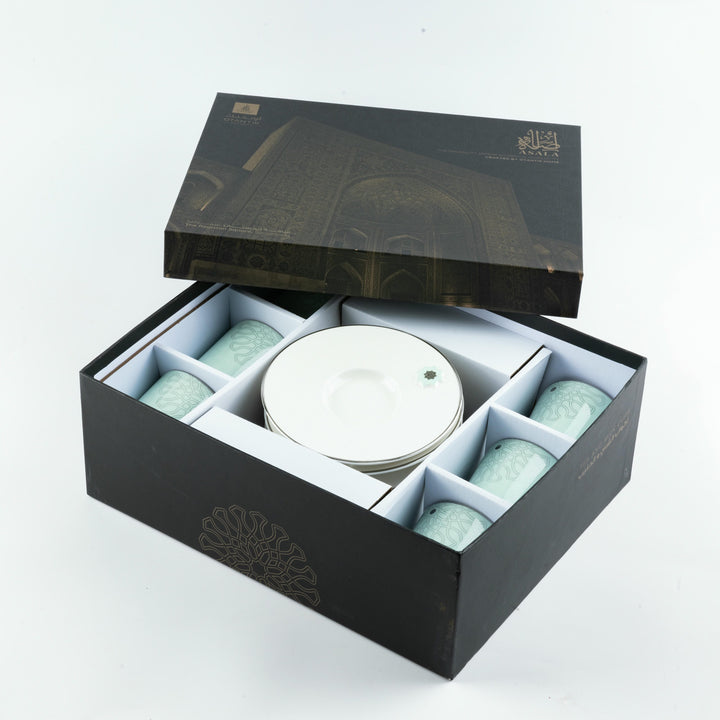 Porcelain Tea Set 12 Pcs From Asalah - Teal + Silver