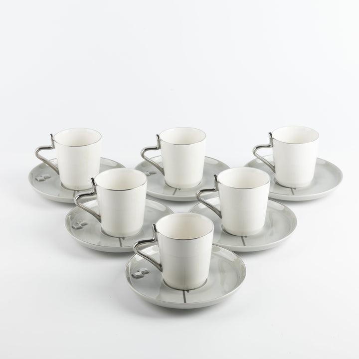 Porcelain Tea Set 12 Pcs From Liqaa - Grey + Silver
