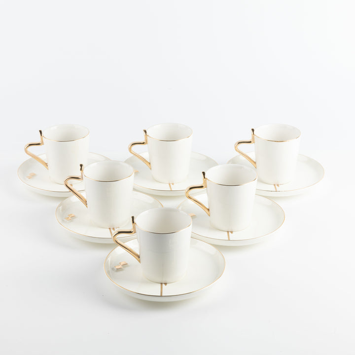 Porcelain Tea Set 12 Pcs From Liqaa - Pearl White + Gold