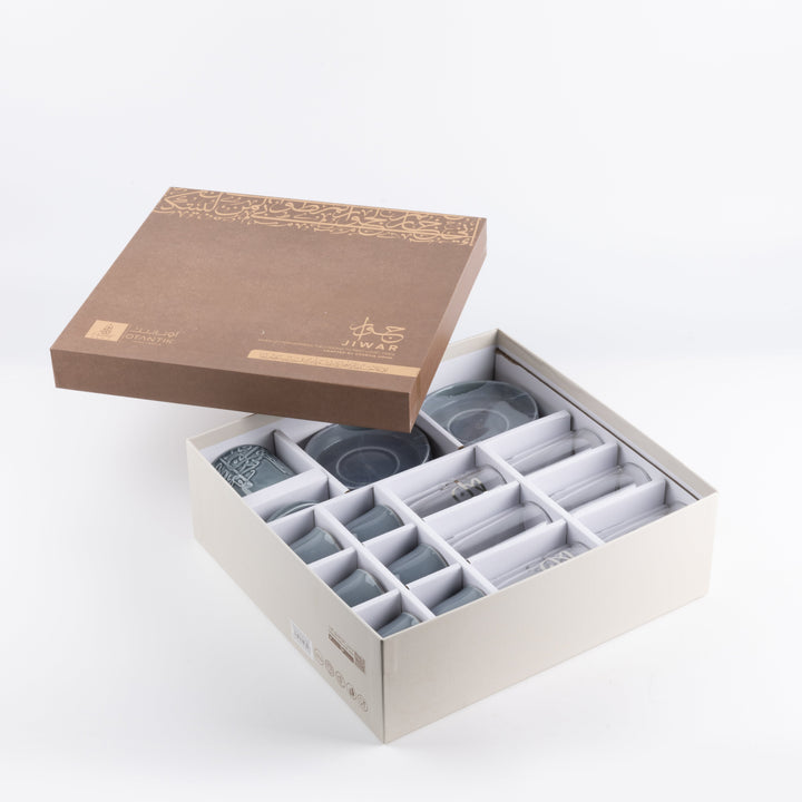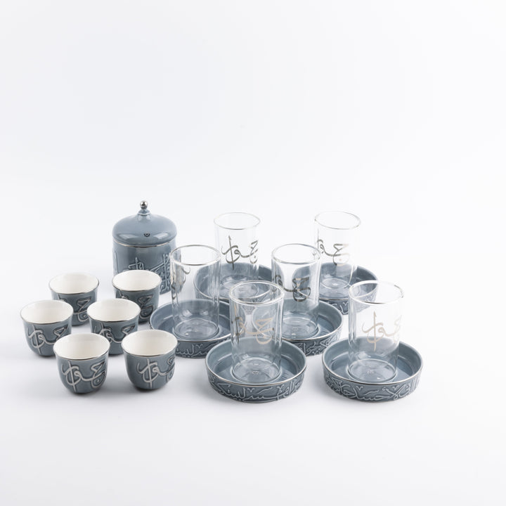 Tea And Arabic Coffee Set 19 Pcs From Jiwar - Blue + Silver