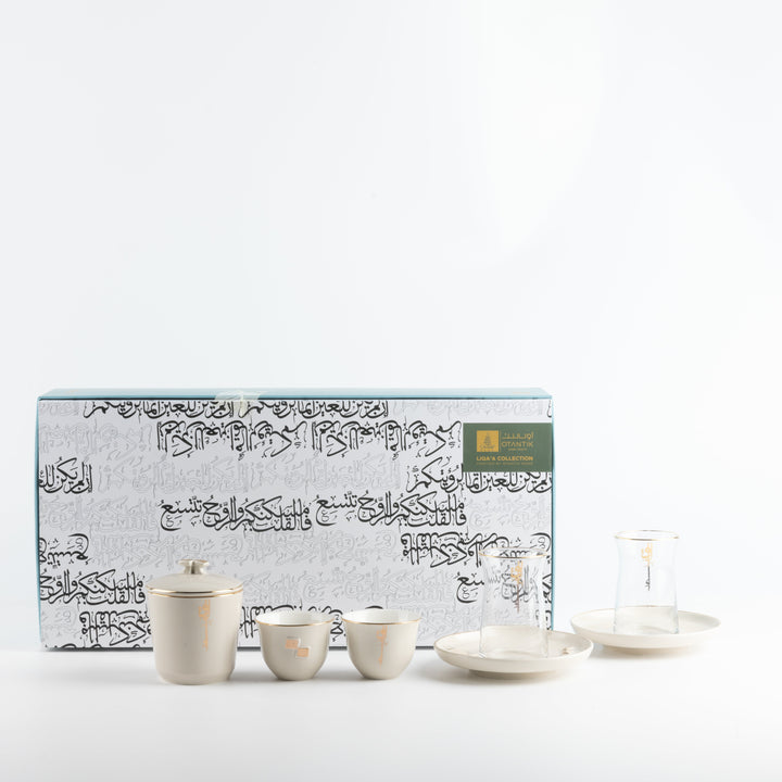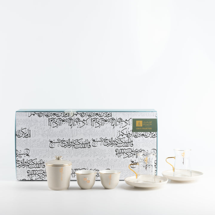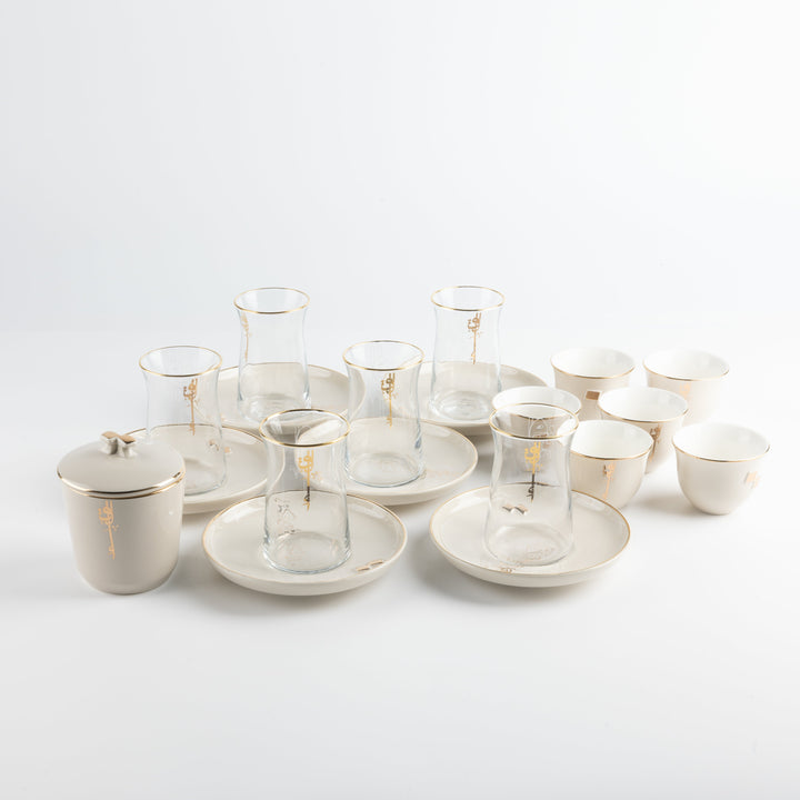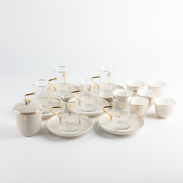 Tea And Arabic Coffee Set 19 Pcs From Liqaa - Beige + Gold