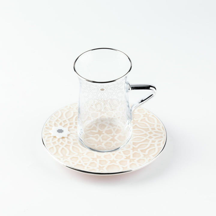 Tea Glass Set 13 Pcs From Asalah - Creamy + Silver
