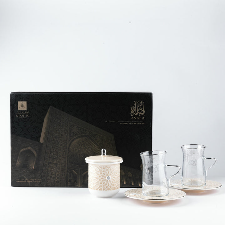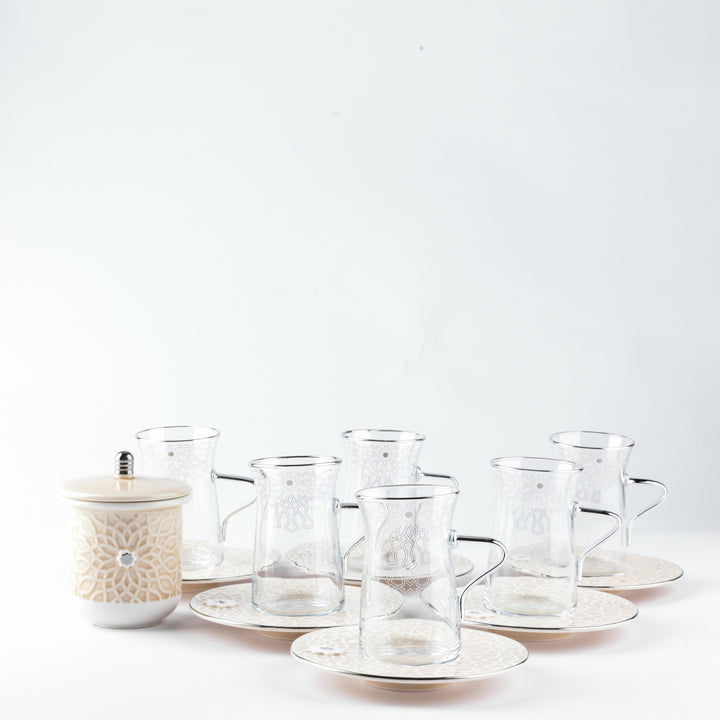 Tea Glass Set 13 Pcs From Asalah - Beige and Gold
