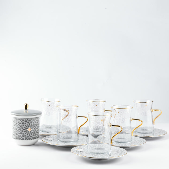Tea Glass Set 13 Pcs From Asalah - Grey + Gold