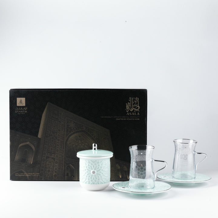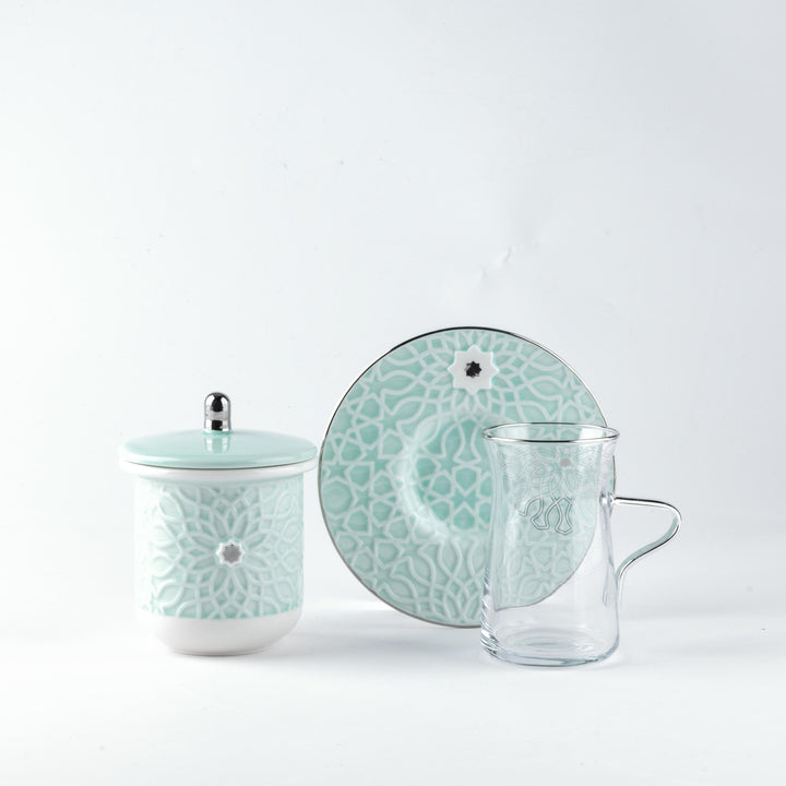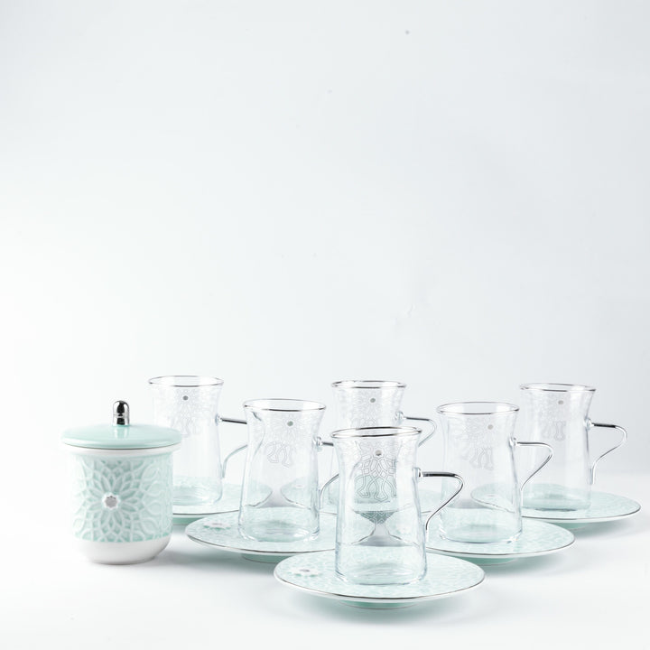 Tea Glass Set 13 Pcs From Asalah - Teal + Silver