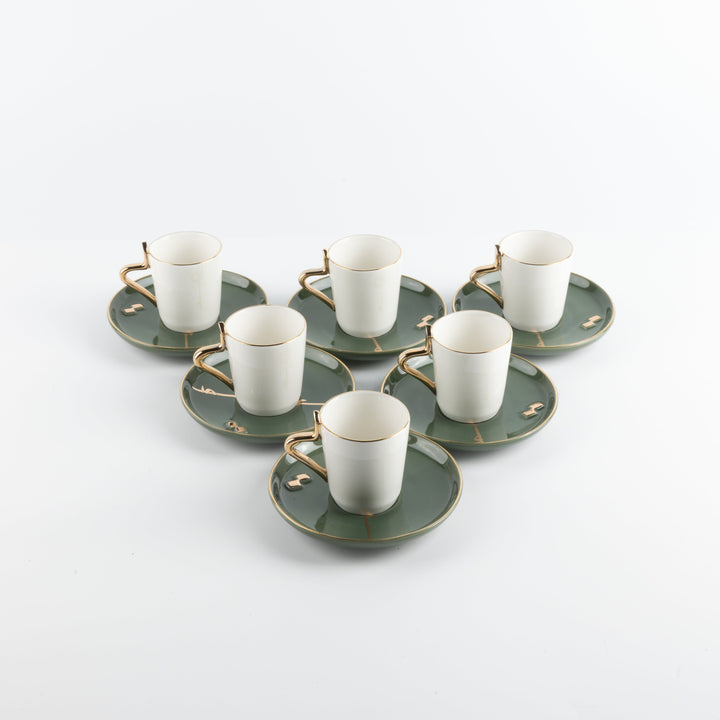 Turkish Coffee Set 12 Pcs From Liqaa - Olive + Gold