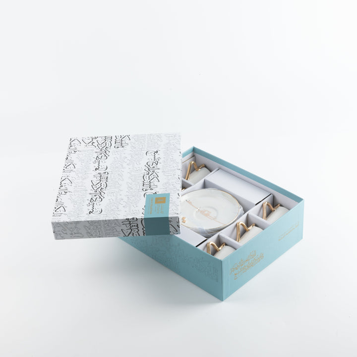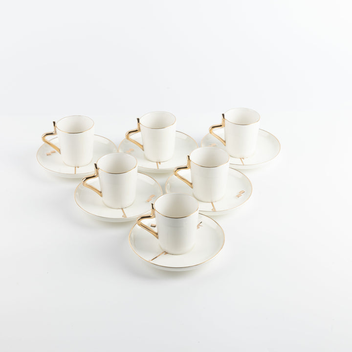 Turkish Coffee Set 12 Pcs From Liqaa - Pearl White + Gold
