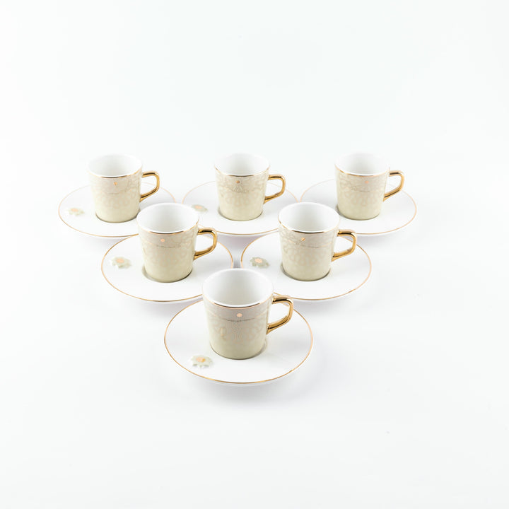 Turkish Coffee Set 12pcs From Asalah - Beige + Gold