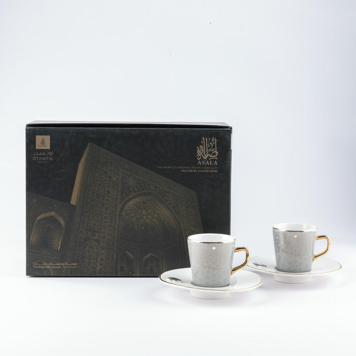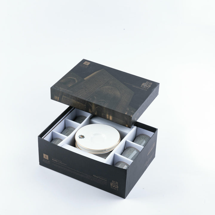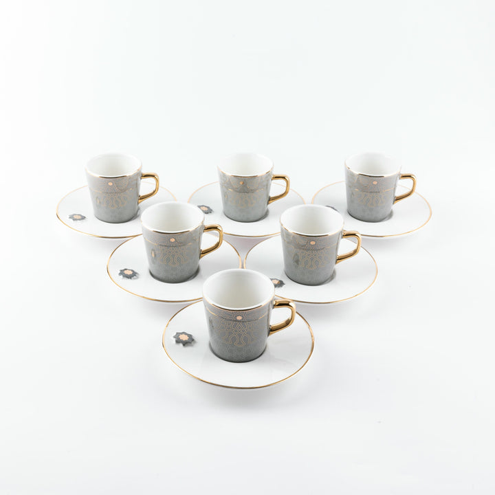 Turkish Coffee Set 12pcs From Asalah - Grey + Gold